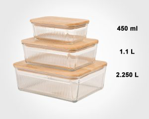 ست ظرف شیشه ای مستطیل در چوبی کد محصول : 2211
