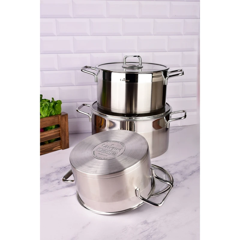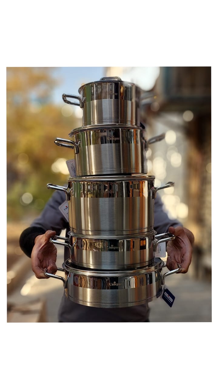 هم برای سرخ کردن هم برای پلو ، عااااااالیه ، کاملا نچسب با خیال راحت ، قابلمه استیل یونیک ، استیل 18/10 ، کف چدن پنج لایه ، قالب جدید ، دیواره بلند ، درب فلت ، یونیک به قیمت کارخونه ❌️