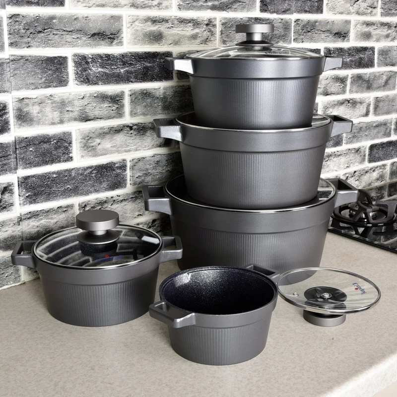 یک عدد قابلمه سایز 32 ، یک عدد قابلمه سایز 28 ، یک عدد قابلمه سایز 24 ، یک عدد قابلمه سایز 20 ، یک عدد قابلمه سایز 16 ، تابه دو دسته دربدار سایز 28 ، تابه تک دسته بدون درب سایز 24 ، تابه دوطرفه رژیمی سایز 34