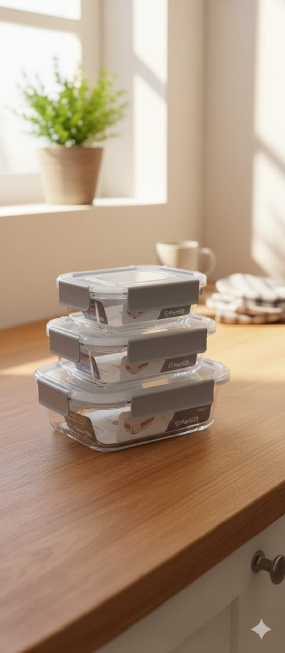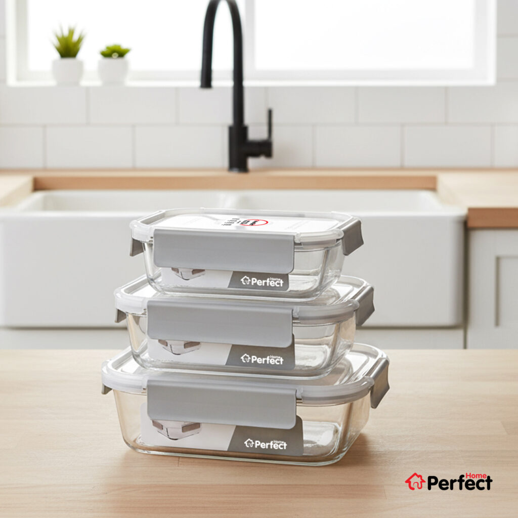 سرویس 3 پارچه پرفکت مستطیل ظرف نگهدارنده perfecthome