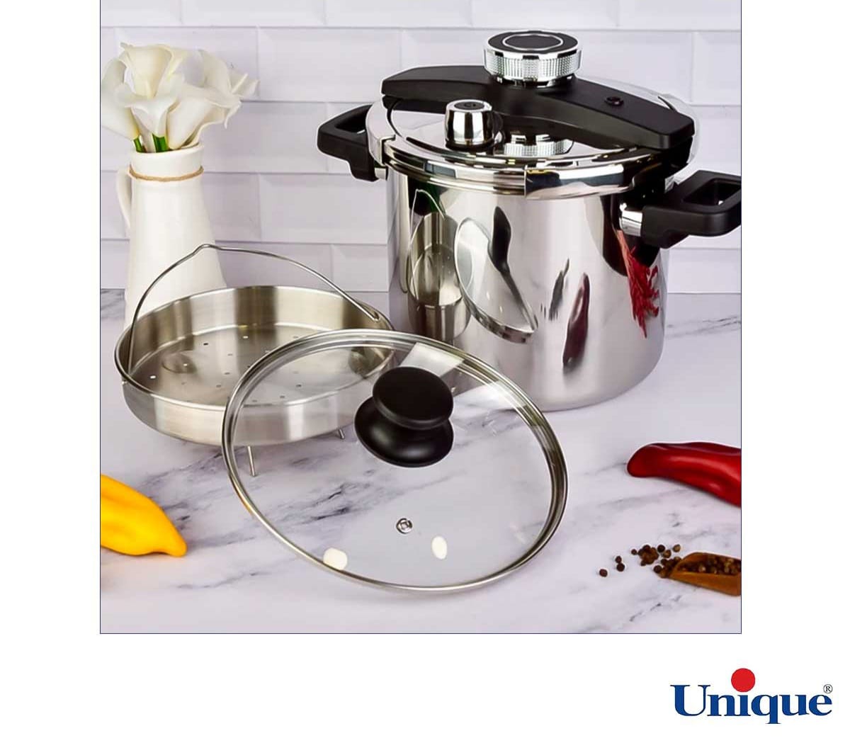 زودپز تک 6 لیتری یونیک کد 8622، انتخابی بی‌نظیر برای آشپزخانه شماست. با طراحی مدرن و ظرفیت عالی، پخت‌وپز سریع و آسان را تجربه کنید. ایمنی بالا و نگهداری از طعم غذا، از ویژگی‌های برجسته این محصول است. همین امروز با خرید این زودپز کارآمد و بادوام، کیفیت آشپزی خود را ارتقا دهید!