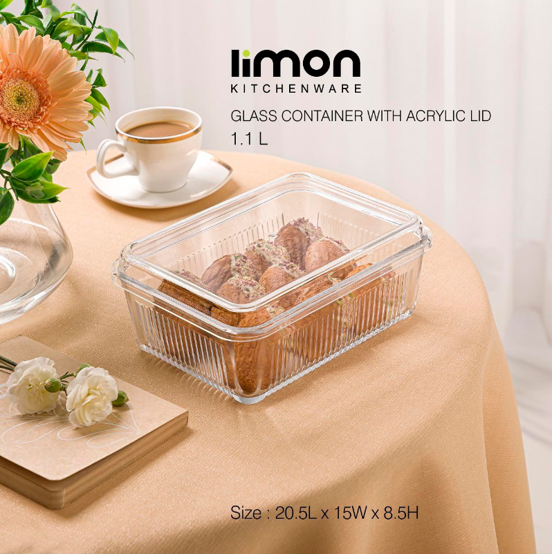 ظرف شیشه ای 1.1 لیتر درب اکرولیک کد محصول : 2260