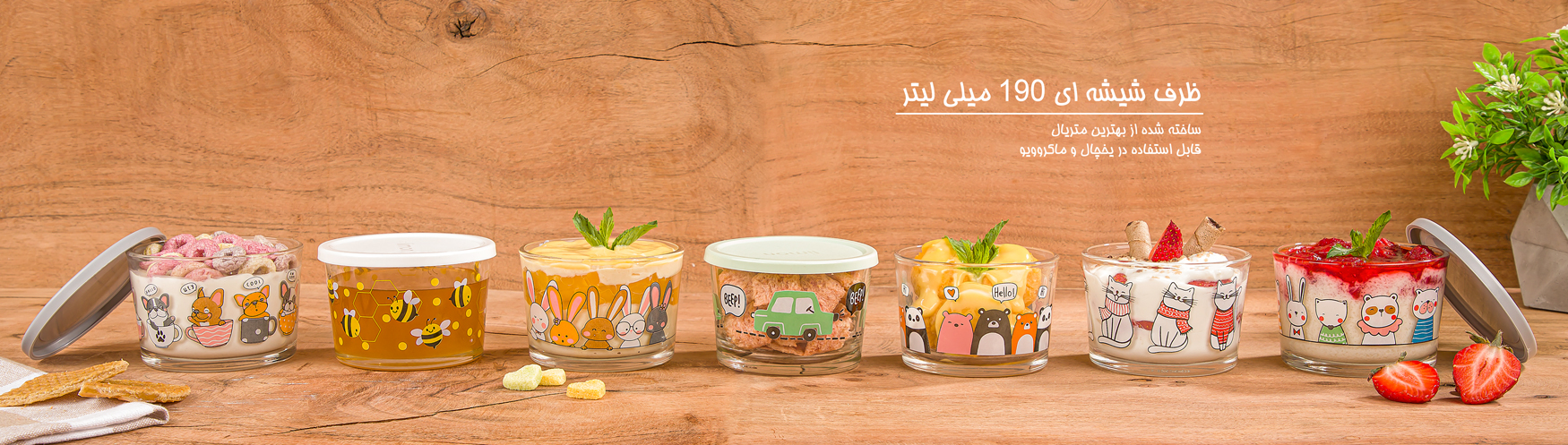 ظرف شیشه ای درب دار 190 میلی لیتر چاپ دار کد محصول : 1999